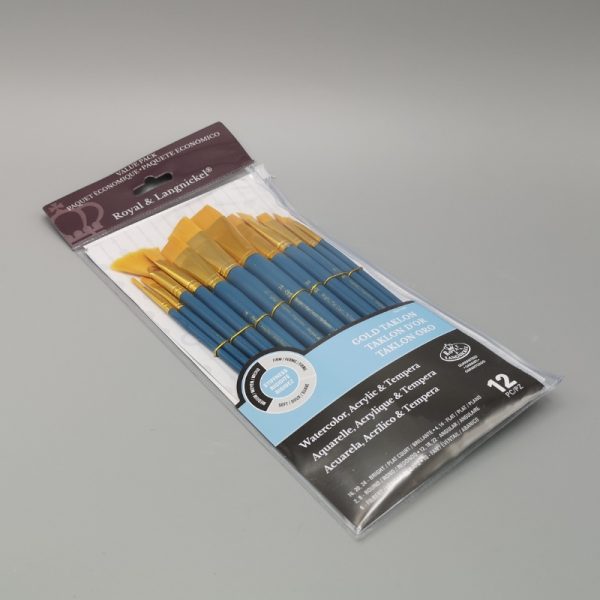 KW-12P Penseel mix 12 stuks – Complete set van 12 penselen. Bevat ronde en platte penselen in verschillende formaten, inclusief een waaierpenseel.